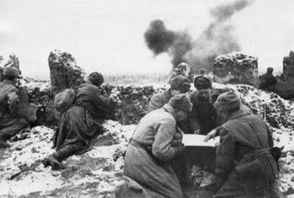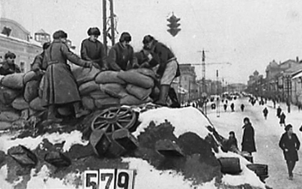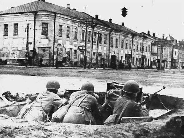 Защитники города на перекрестке улиц Советской и Коммунаров![]()