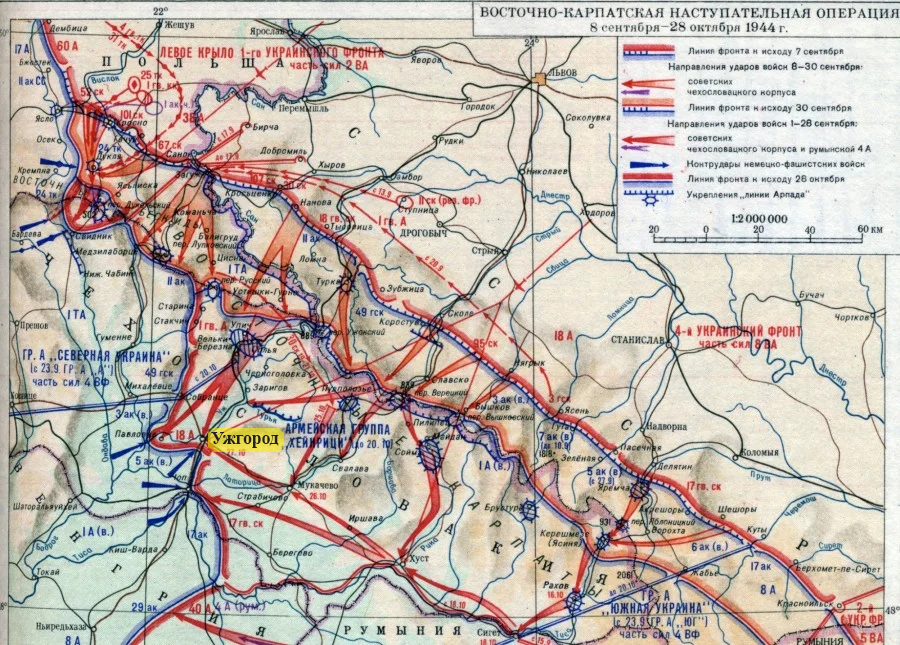 27 октября 1944 года в ходе Карпатско-Ужгородской операции две советские танковые колонны, наступавшие со стороны Мукачева и Ужоцкого перевала, освободили город Ужгород от венгерских и немецких войск.