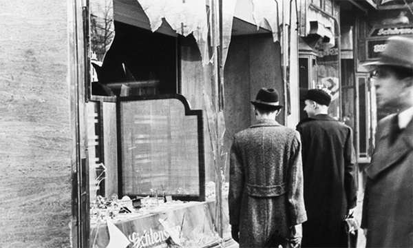 В ночь с 9 на 10 ноября 1938 года начался массовый еврейский погром в Германии, получивший название «Хрустальной ночи» (Crystal Night / Kristallnacht), или «Ночи разбитых витрин».