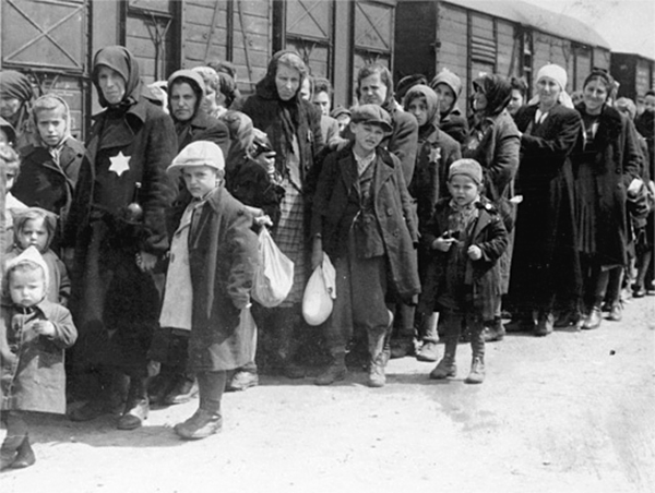 Женщины и дети из депортированных в концлагерь Освенцим II (Биркенау)