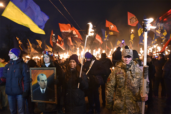 Факельное шествие на Украине в честь дня рождения Бандеры