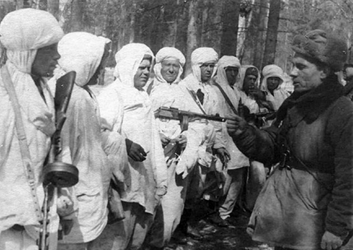 бойцам во время Вяземской воздушно-десантной операции. Февраль 1942 г.![]()