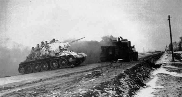 Советские танки перерезают дорогу Житомир – Бердичев.![]()