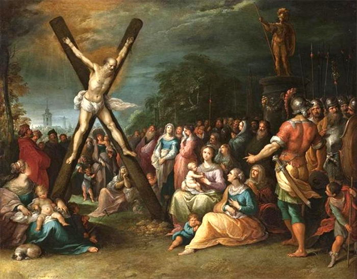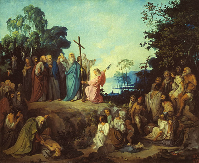 Апостол Андрей Первозванный водружает крест на горах Киевских.![]()