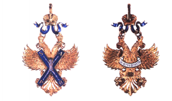 В 1698 году российским царём Петром I была учреждена первая, а затем ставшая высшей, награда России – Орден Святого Андрея Первозванного. В 1998 году этот орден в России был возрождён. Орден Святого апостола Андрея Первозванного имеет знак и звезду.