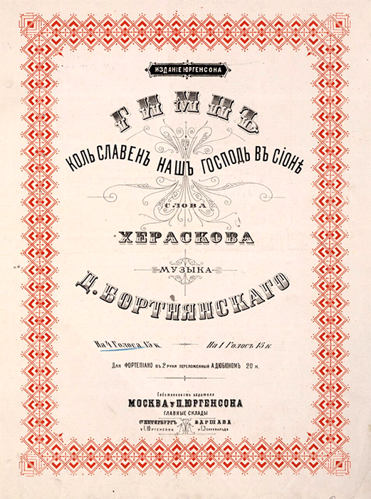 Рождение первого государственного гимна России произошло в царствование императора Павла I. Им была основательно переработана и строго установлена система воинских и государственных церемоний, в которых значительное место уделялось музыкальному сопровождению. Таким произведением стал духовный гимн «Коль славен наш Господь в Сионе», написанный Д. Бартнянским на слова поэта М. Хераскова.