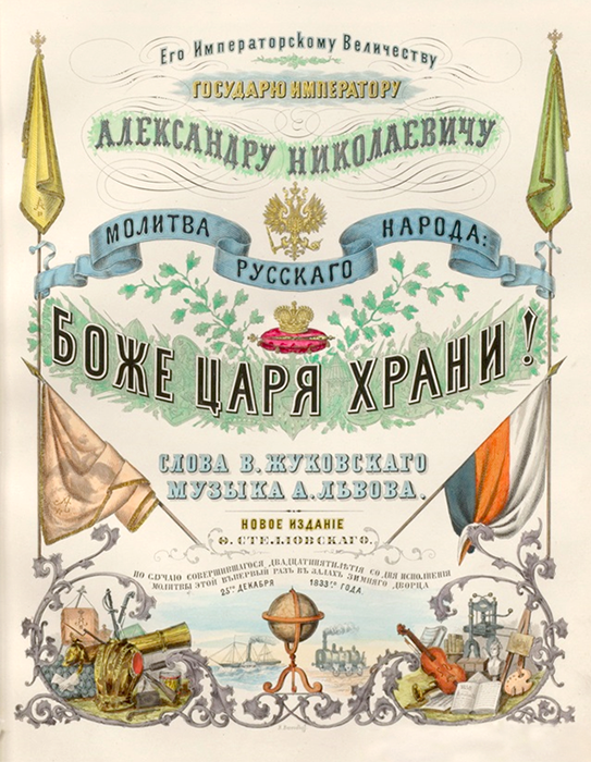 Рождение второго официального гимна, с которым страна прожила почти век, связано с именем композитора Алексея Львова. По указанию Николая I в 1833 году им была написана музыка российского государственного гимна на слова, но уже другие, Василия Жуковского. Впервые публично «Молитва русского народа» прозвучала 11 декабря 1833 года в Большом театре, а 31 декабря гимн под новым названием «Боже, Царя храни» был объявлен государственным и оставался единственным официальным гимном до 1917 года.