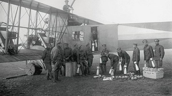 Загрузка бомб в тяжелый бомбардировщик «Илья Муромец»![]()