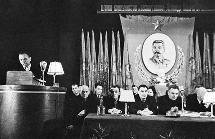 В президиуме собрания по выдвижению первого секретаря Днепропетровского обкома КПСС Леонида Брежнева (третий справа) кандидатом в депутаты Верховного Совета СССР. Днепропетровск, 20 марта 1946 г.