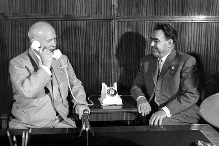 В 1954 году по предложению Н. С. Хрущева Брежнев был направлен на работу в Казахстан, где сначала занимал пост второго, а с 1955 года – первого секретаря компартии республики. С 1957 года член президиума и секретарь ЦК КПСС. Как лицо, пользующееся полным доверием Хрущева, в 1960 году он был назначен председателем Президиума Верховного Совета СССР. В 1964 году Леонид Брежнев возглавил заговор против Хрущева, после смещения которого, занял пост первого секретаря ЦК КПСС.