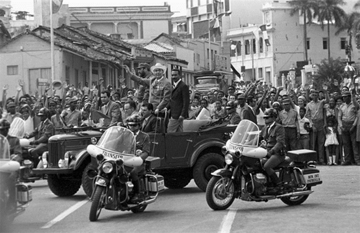 Фидель Кастро Рус во время проезда по городу. Куба, Сантьяго-де-Куба, 1974 г.