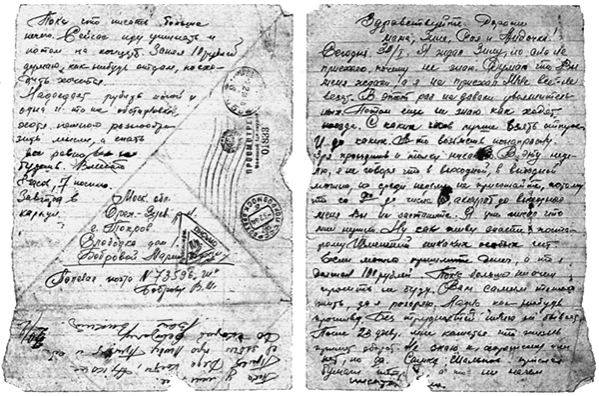 В 1944 году в дом Бобровых стали приходить письма с фронта. Надо понимать, что все письма просматривала цензура, так как не все можно было написать.