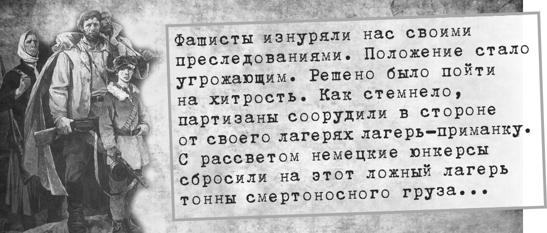 Нужно было немедленно найти выход из создавшегося положения. И он был найден. Чтобы обезопасить себя с воздуха, народные мстители пошли на хитрость.