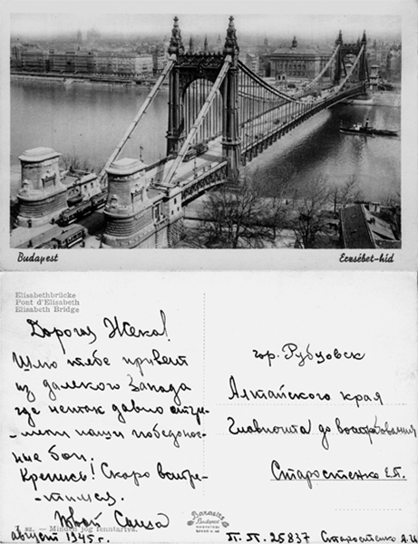 Открытка, присланная из Будапешта жене Евгении, август 1945 г.
