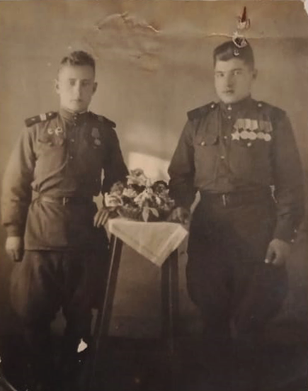 9 мая 1945 года меня застало в Кандаве. Нам был дан приказ привести себя в порядок, и командир поздравил нас с Победой. Затем нас вывели из города. На три дня мы остались в лесу, а меня направили в отдел контрразведки СМЕРШ (смерть шпионам). Прослужил я там до февраля 1946 года. После перевода, по моей просьбе, через город Самарканд, я вернулся в свою часть, которая находилась в городе Ката-Кургане (Узбекистан). Здесь я пробыл до июня 1946 года. Потом в грузовых вагонах нас перевезли в город Комсомольск-на-Амуре. На станциях нас кормили, выдавали сухие пайки. Город был просто переполнен военными. После расформирования я попал в город Николаевск-на-Амуре, где и служил до 1950 года. Приказ о демобилизации был от января 1950 года, но в связи с «корейскими» событиями домой я попал только в сентябре 1950 года. Родных я не видел семь лет. Мой отец тоже остался в живых и вернулся домой. По приезду домой я поехал учиться в город Тамбов в школу повышения квалификации по профессии «техник радиоузлов». После окончания учебы работал в Гавриловском районе Тамбовской области, где и познакомился с Саутиной Зинаидой Яковлевной. Поженились в 1952 году. В 1953 году родился сын Владимир, в 1956 г. – дочь Валентина.