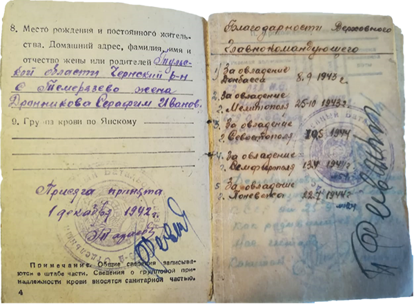 В продолжение предыдущего материала хочу рассказать все, что я знаю о своем дедушке по линии отца – Дронникове Петре Егоровиче, имещего благодарность Верховного Главнокомандующего «За овладение г. Севастополем» (см. фото ниже).