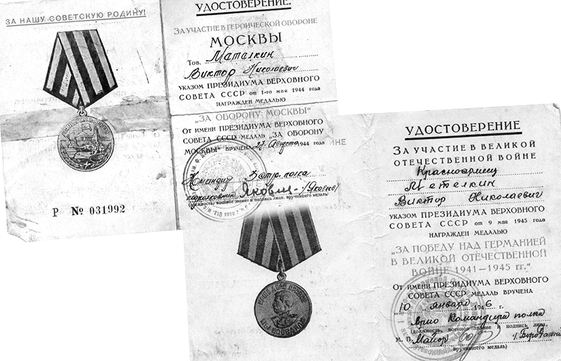 С октября 1941 года по январь 1942 года Виктор Николаевич принимал активное участие в обороне Москвы, в составе орудийного расчета противотанкового орудия 45-го калибра защищал Кремль. Медалью «За оборону Москвы», которой был награжден, он очень гордился, она была первой воинской наградой.
