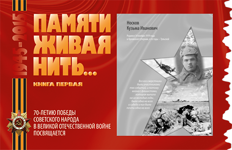 Отец, Носков Кузьма Иванович, родился 14 ноября 1919года в Орловской губернии (в те годы – Тульской). Он мало делился своими воспоминаниями о военных годах, может быть, считал это обычным делом – ведь все его сверстники были участниками тех событий, и потому война с фашистами, которая выпала на их молодые годы, была одна на всех и судьба у них была почти одна на всех. Поэтому, наверное, они не часто рассказывали друг другу о тех событиях. Конечно, они что-то вспоминали при встречах с такими же фронтовиками, но их устремления к мирной жизни были так велики после того кошмара, который выпал на их долю, что больше говорили о насущном, и только иногда я могла слышать воспоминания о войне. Воспоминания эти всегда всплывали по какому-либо случаю. А случаи такие возникали довольно часто, когда в квартиру приходил врач, помогавший моему отцу бороться с последствиями контузии, из-за которой он приобрел хроническое заболевание легких. И в больницах ему приходилось лежать очень часто.