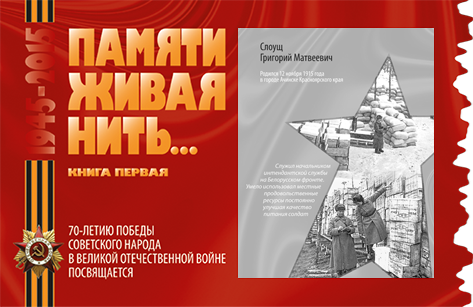 Мой прадедушка Слоущ Григорий Матвеевич во время Великой Отечественной войны был старшим лейтенантом интендантской службы и дошел до Берлина.