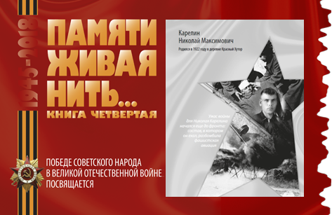 В нашем селе остался один фронтовик. Время неумолимо, теперь они только в нашей памяти. Моя память заставляет меня рассказать о моем отце – Николае Максимовиче Карелине. Родился он в конце 1922 года в маленькой деревеньке с именем Красный Хутор. Он был четвертым ребенком в семье, и назвали его Спиридоном. Когда ему исполнилось всего-то полгода, умерла мать от страшной болезни – тифа, который выкашивал целые семьи. Малыш чудом остался жив, находясь все время возле больной матери.