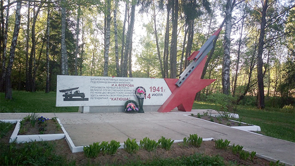 Мемориальный комплекс в деревне Пищалово, Оршанский район. Место первого применения установки БМ-13 «Катюша»