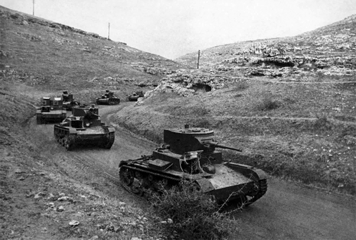Колонна советскийх танков у реки Халхин-Гол, 1939 год![]()
