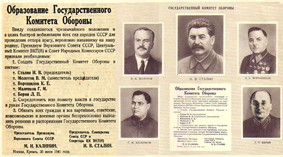 В 1941 году в СССР создан Государственный Комитет Обороны