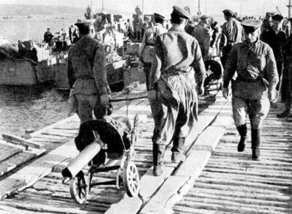 Погрузка на катера отряда Цезаря Куникова. 1943 г.![]()