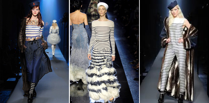 Причем популярна эта одежда не только у профессионалов, но и у обывателей – и у взрослых, и у детей. Она давно стала не только элементом морской амуниции, но и предметом гардероба многих людей, не связанных с флотом. Например, известным популяризатором этой «полосатой рубахи» является французский модельер Жан-Поль Готье, представивший в 1990-х годах несколько коллекций прет-а-порте в сине-белую полоску.