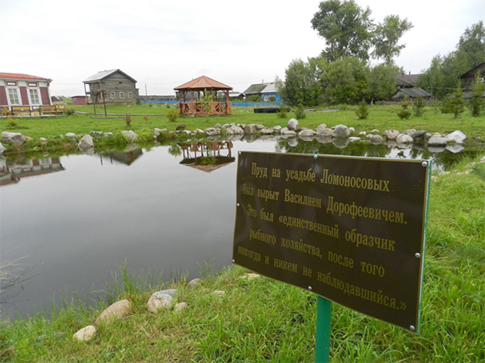 Пруд у восстановленной усадьбы Ломоносовых (ныне музей Ломоносова) в селе Ломоносово.![]()