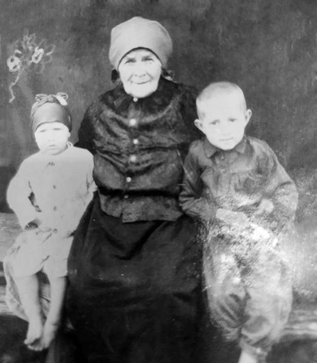 Мама Николая Селиванова с правнуками Вовой и Люсей, 1956 год