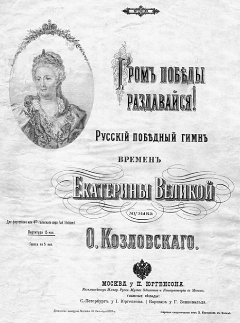 Первые мелодии и песни, подобные государственному гимну, стали возникать в России в XVIII веке. В царствование императора Петра I был создан «Преображенский марш». Государственным гимном он не являлся, но часто исполнялся на торжественных церемониях первой половины XVIII. В царствование императрицы Екатерины II композитором О. Козловским на стихи Г. Державина был написан торжественный полонез «Гром победы раздавайся», звучавший на важнейших придворных церемониях.
